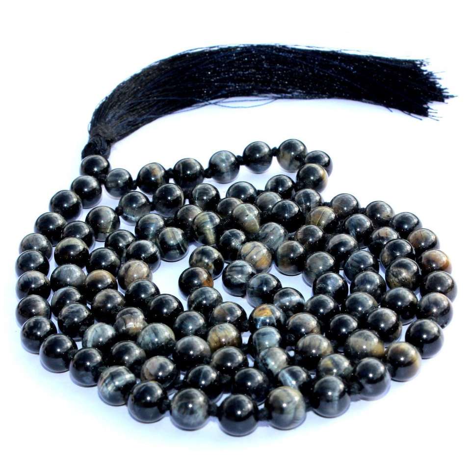 Buy High Quality Trending Rosary Natural 8 mm Beads Blue Tiger Eye Crown Chakra 108 Bead Yoga Mala Necklace