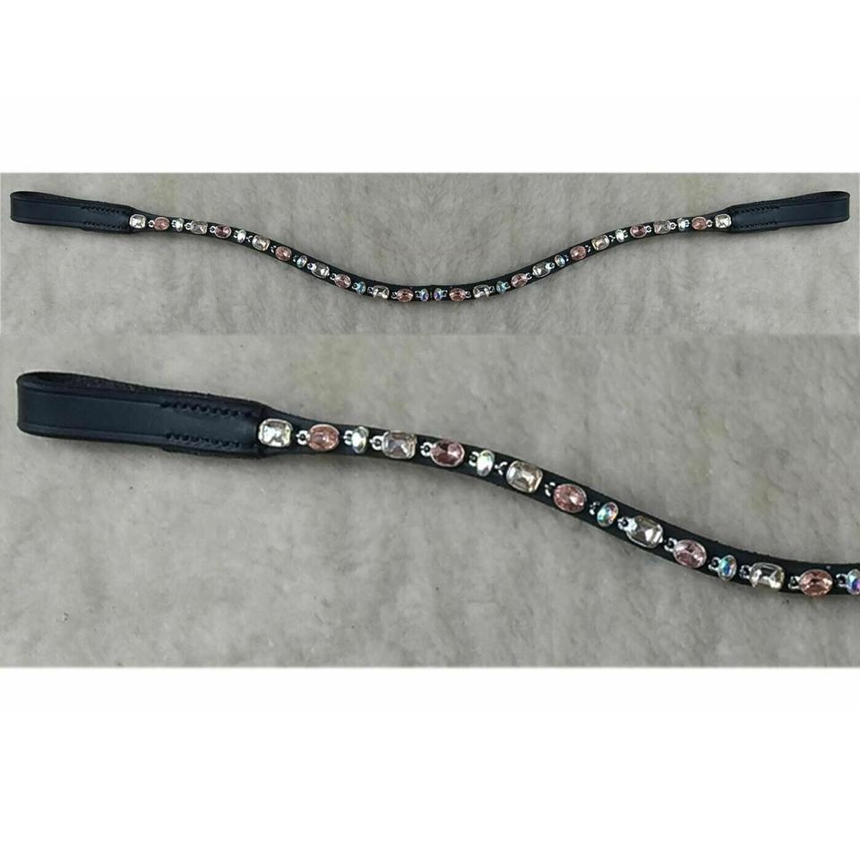 Stunning Black Leather Horse Brow-Band Thin U-Shaped Curved One-Row Crystal Tack Equestrian LLT Brand Customizable Size Logo