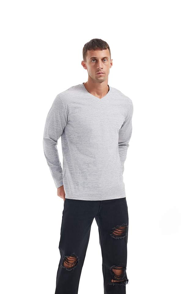 Buy Men's T-shirt Organic Bamboo Fabric T Shirt Oversize Eco Long Sleeve V-Neck T Shirts Sustainable Custom Men Clothes