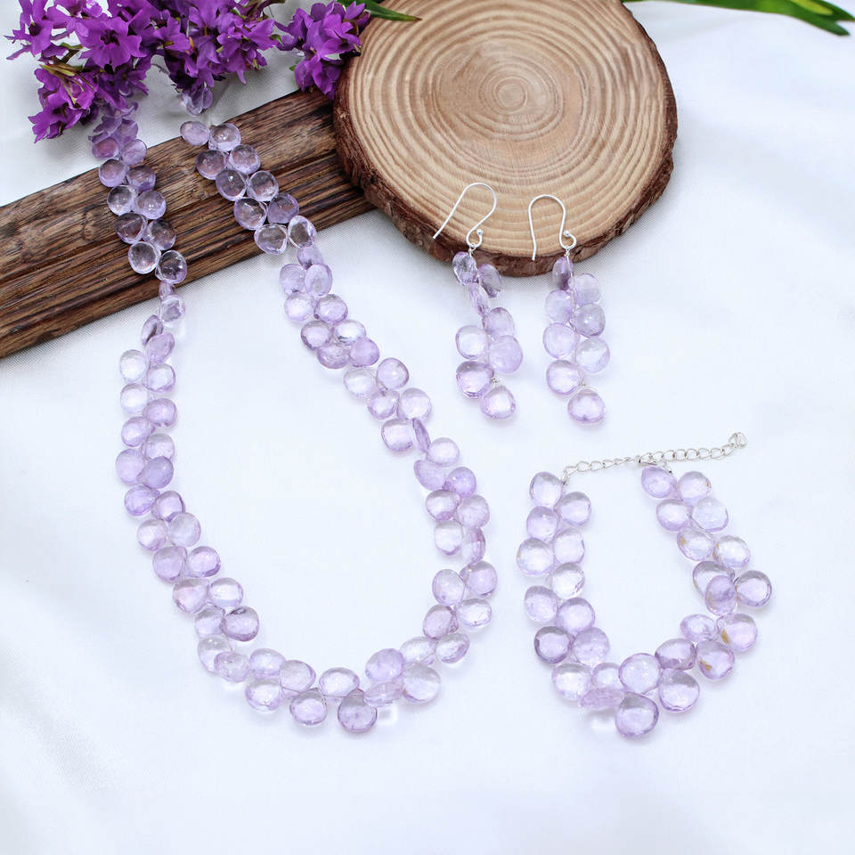 Buy Natural Amethyst Gemstone Top Quality 925 Sterling Silver Necklace, Earrings & Bracelet Handmade Jewelry Set for Wholesale