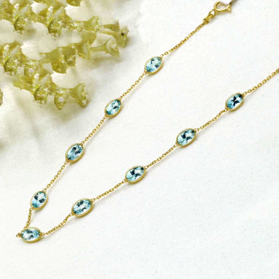 Item Name:Natural Aquamarine Gemstone Bracelet In 18k Yellow Gold