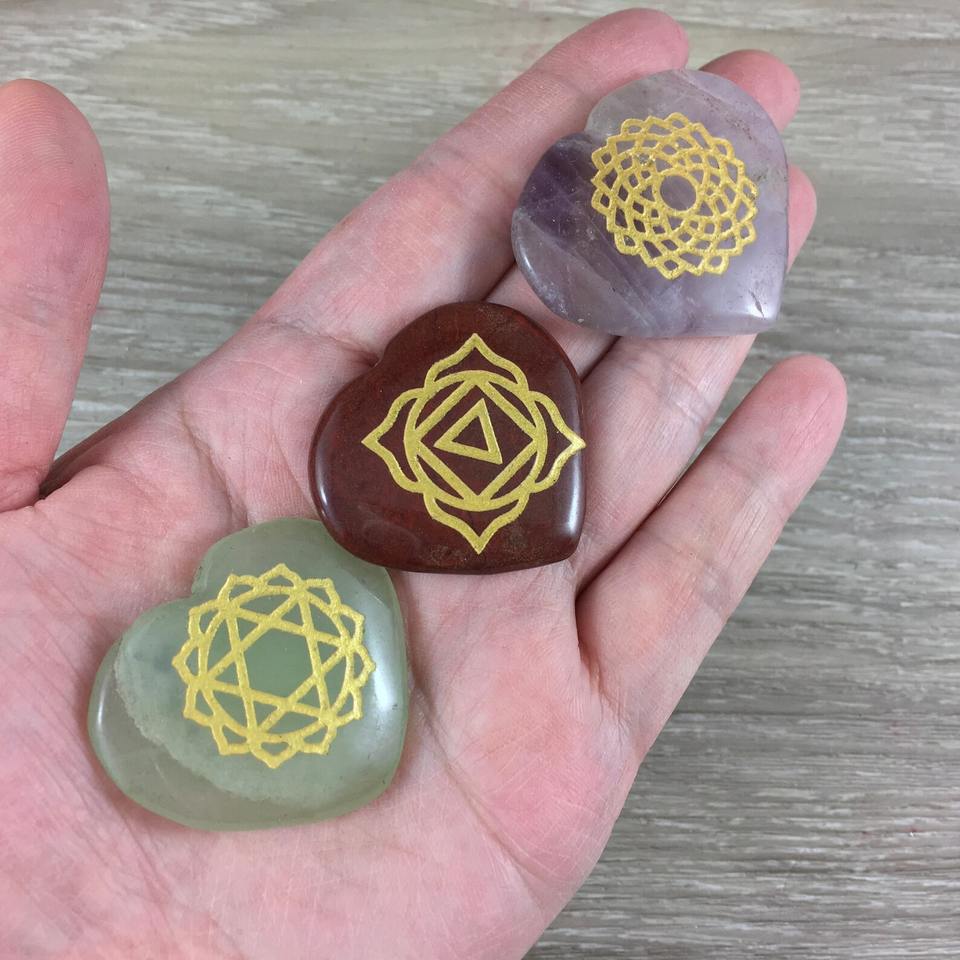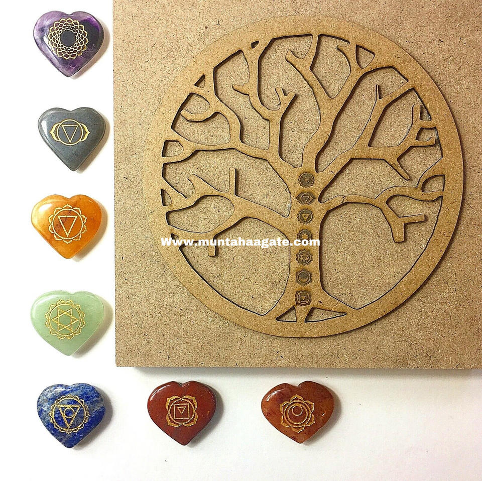 7 CHAKRA HEART SET WITH TREE OF LIFE ENGRAVED GIFT BOX