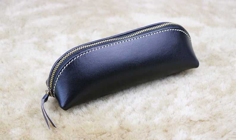 Buy Real Leather Professional Zip Pen Case Pencil Bag Cosmetic Bag Kids and Pen Bag Handcrafted Top Grain Leather Pencil Case