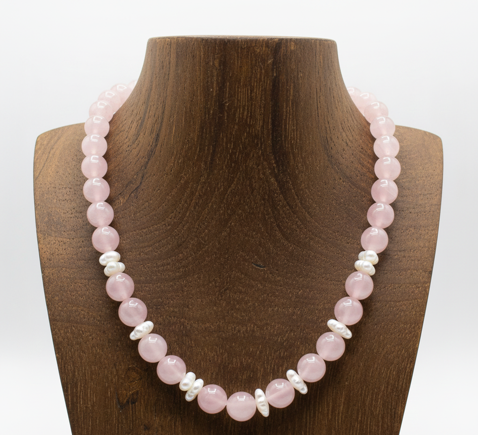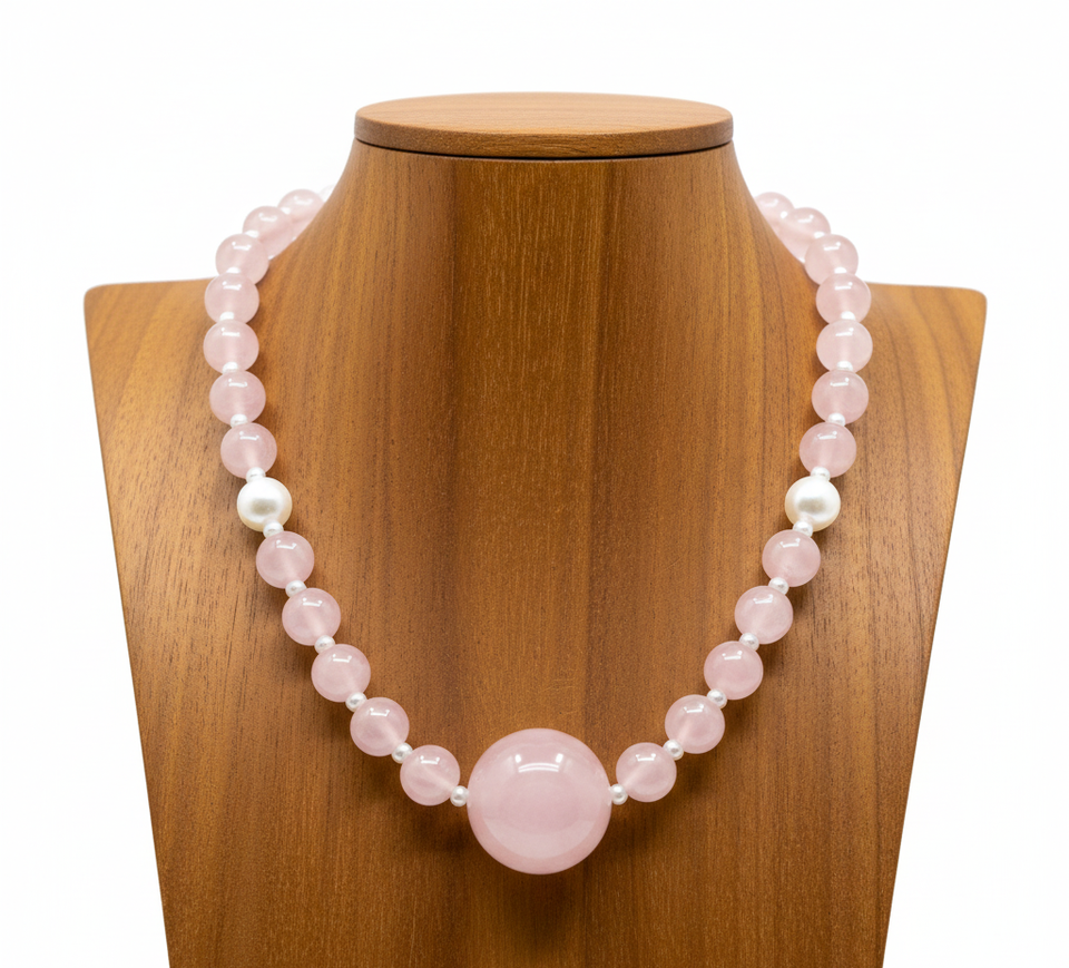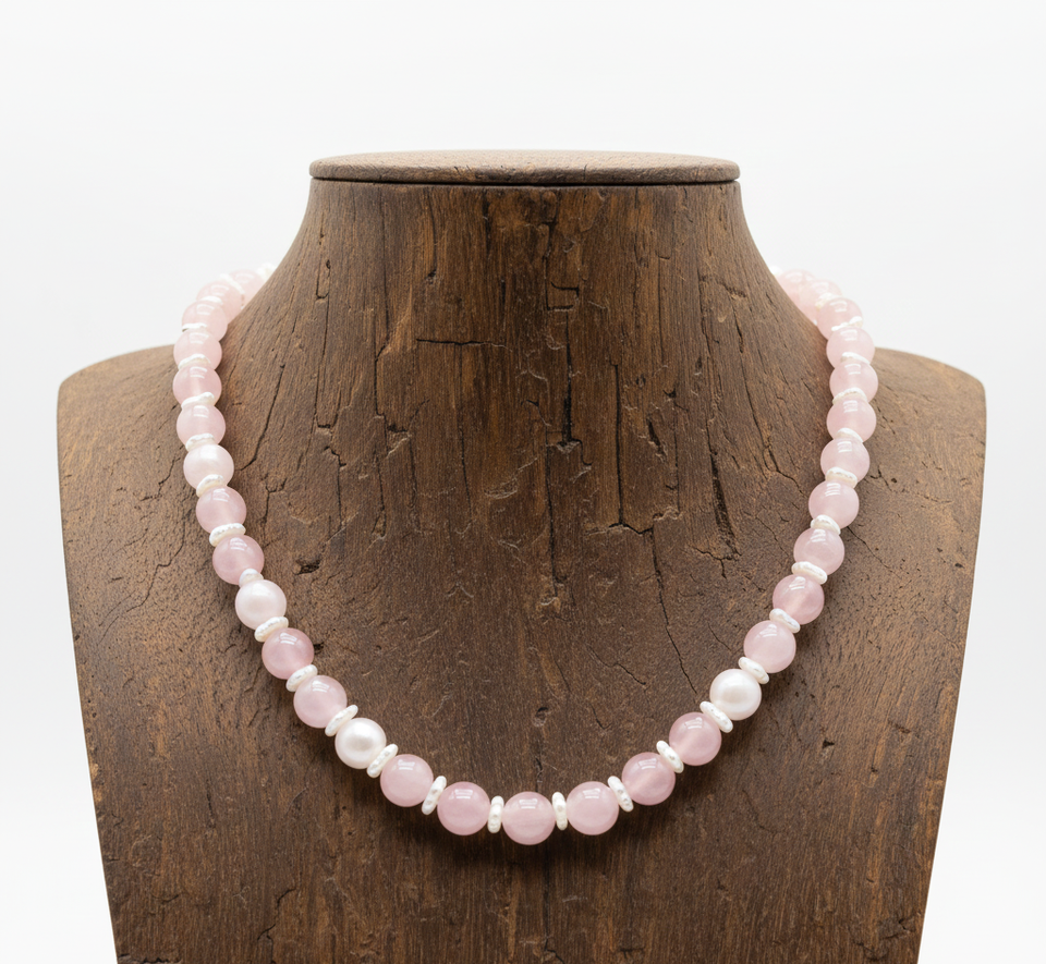 Rose Quartz Geometric Beaded Necklace Gold Plated Unisex 18-Inch Silver 925 Lock Hand-Knotted Trendy Fashion Jewelry Gift