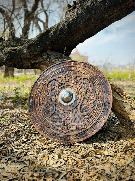Buy Shield Medieval Carving Shield Cross viking wall decor wood wall art Handmade Home Decor by Indian Exporters