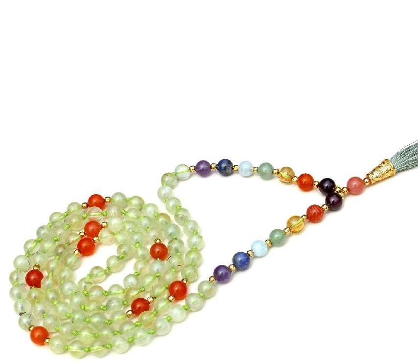 Buy Top Grade 7 Chakra Yoga Jewelry 108 Knotted Mala Beads Prehnite Pulsera Handmade Indian Artist Beaded Necklaces Pearl Main