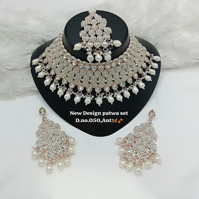 Products Name:Fancy Collection Gold Plated Kundan & Pearl Necklace Set
