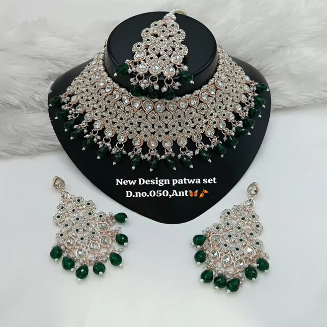 Buy Trending Fancy Collection Gold Plated Kundan & Pearl with Green Stone Necklace Set For Women Wear Jewelry