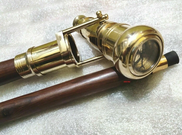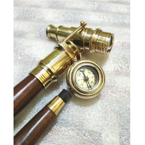 Products Name:Walking Stick Cane Brass Telescope on Top Compass