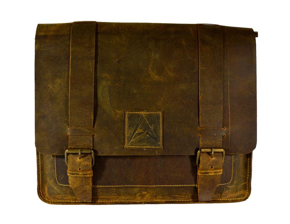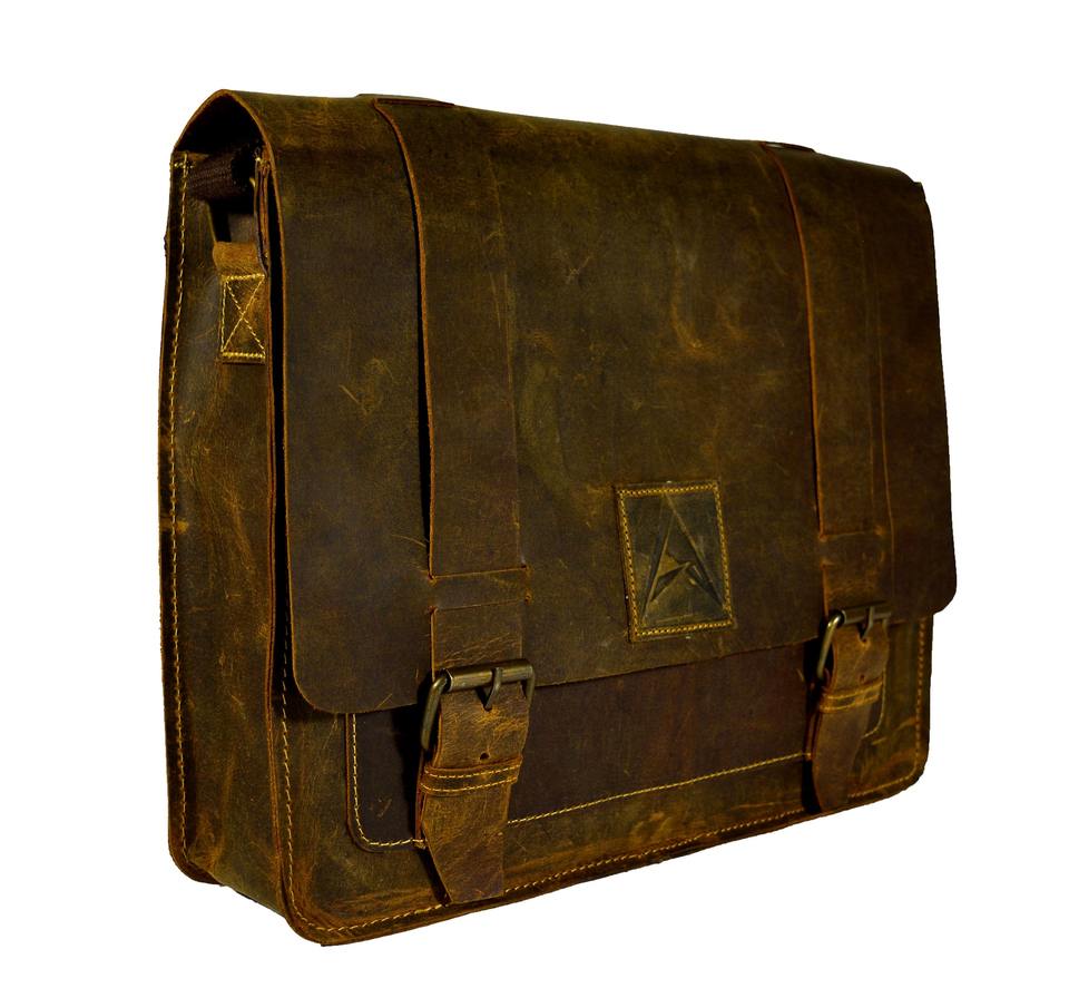 Handmade Indian Genuine Leather Laptop Briefcase Vintage Style Crossbody Messenger Bag with Cover Closure and Letter Decoration