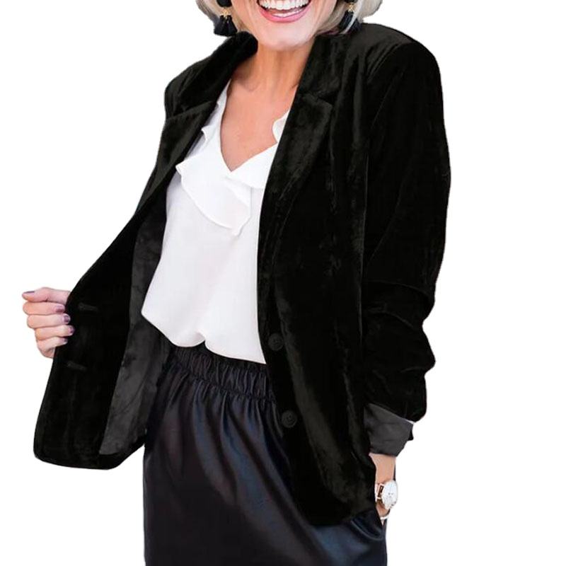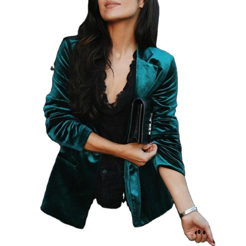 Buy New Sexy V Neck Golden Velvet Small Suit Jacket Autumn New Women Slim Solid Long Sleeves Blazer Elegant Office Lady Blazer