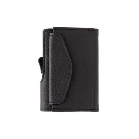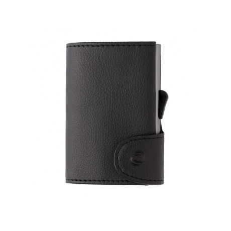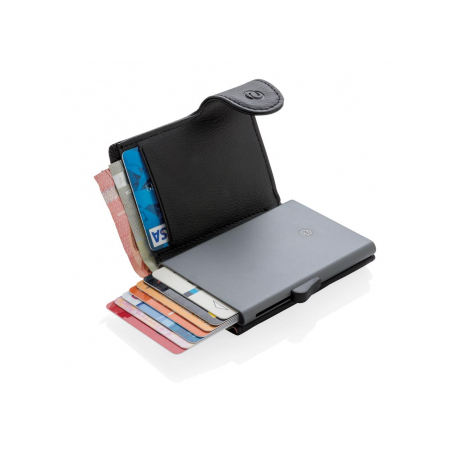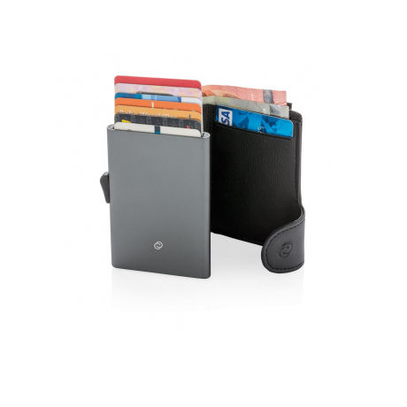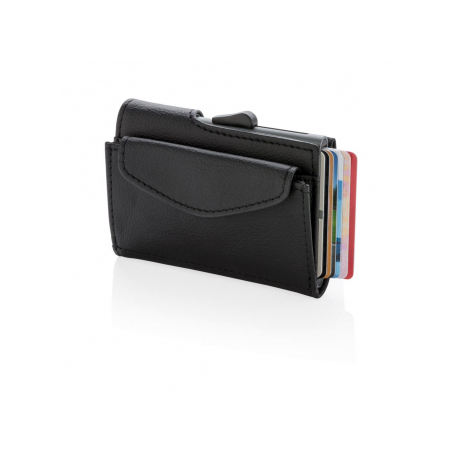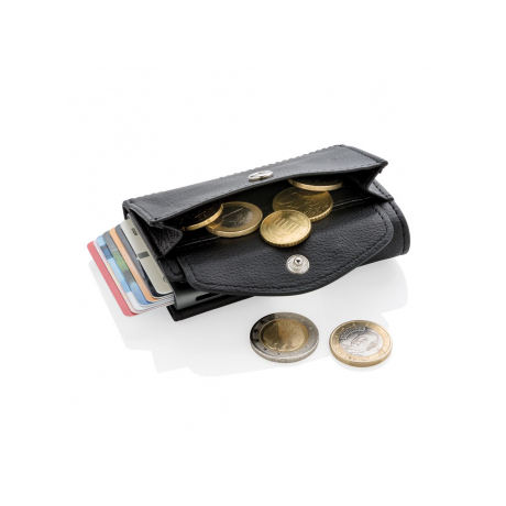 C-Secure Business Card Holder RFID Leather Card Holder with Coin Pocket Metallic PU Material for Credit Cards