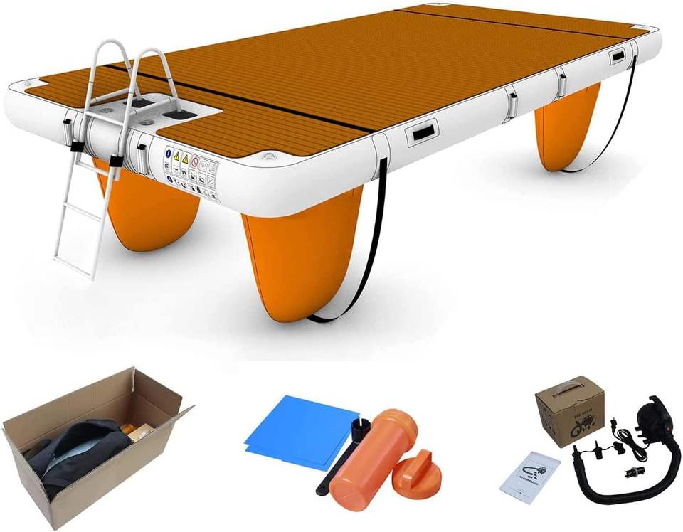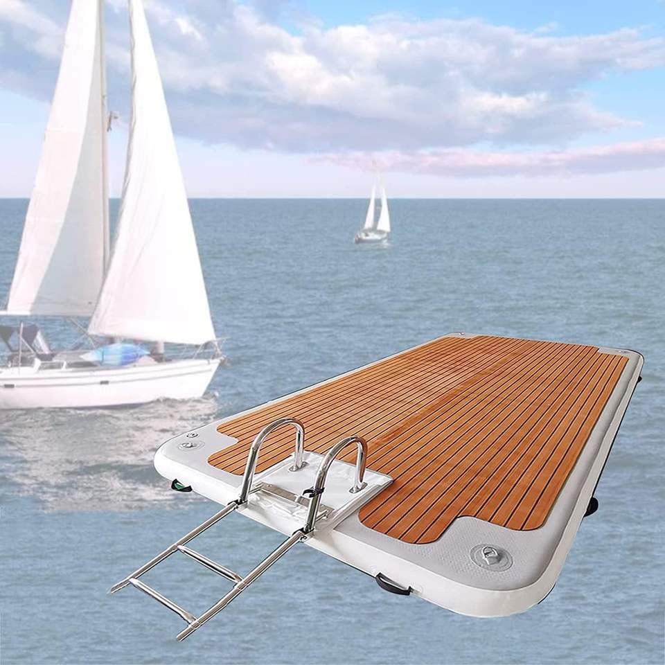 C U I Y M X S C Yacht Floating Fishing Inflatable Boat with Air Pump, Water Inflatable Dock Water Floating Bed Island 6 6 8 2ft