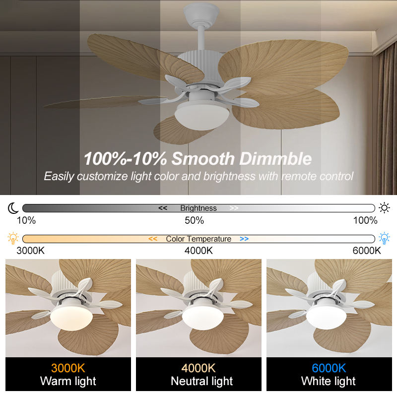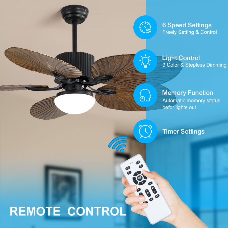 C004 52 Inch Ceiling Fan with Light Kit with Remote Control 5-blades PC Fan Light