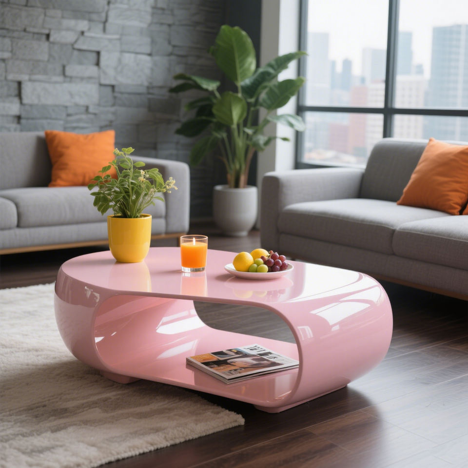 C135 Modern Red Glossy Curved Coffee Table Magazine Rack led light tea desk tables for Living Room Home Furniture