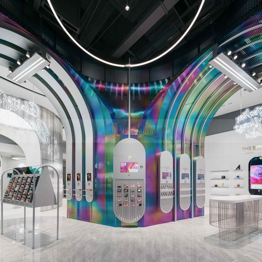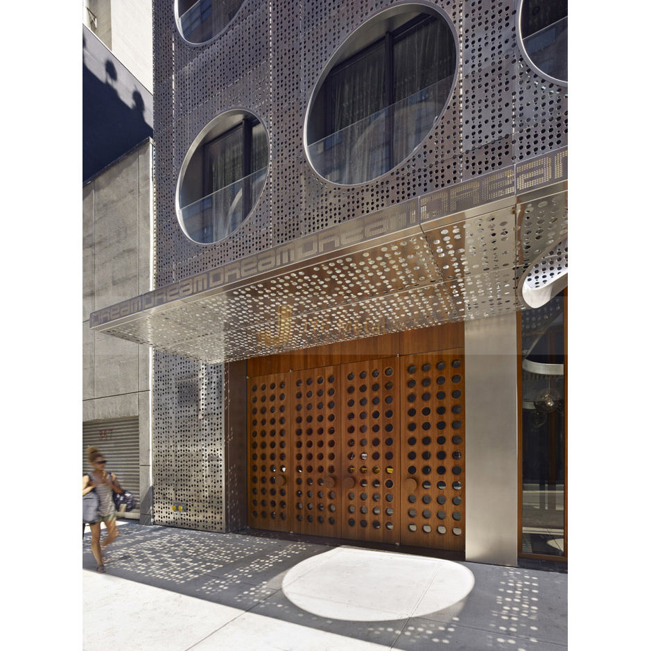 C234 Facade Panels Perforated 304 Stainless Steel Metal Mesh Facade Cladding Panels Pvd Coating Colorful Finished Curtain Wall