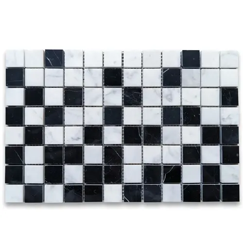 C24B1XH Carrara White Marble Pixel Mosaic Border Tile Nero Marquina Black with Tile Accessories