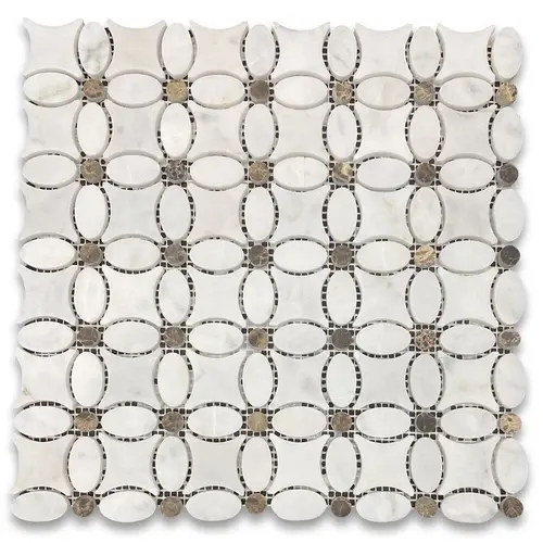 C9C4XH Flower Pattern Carrara White Venato Marble Mosaic Emperador Honed for Floor Wall for Dining Room Bedroom Living Room