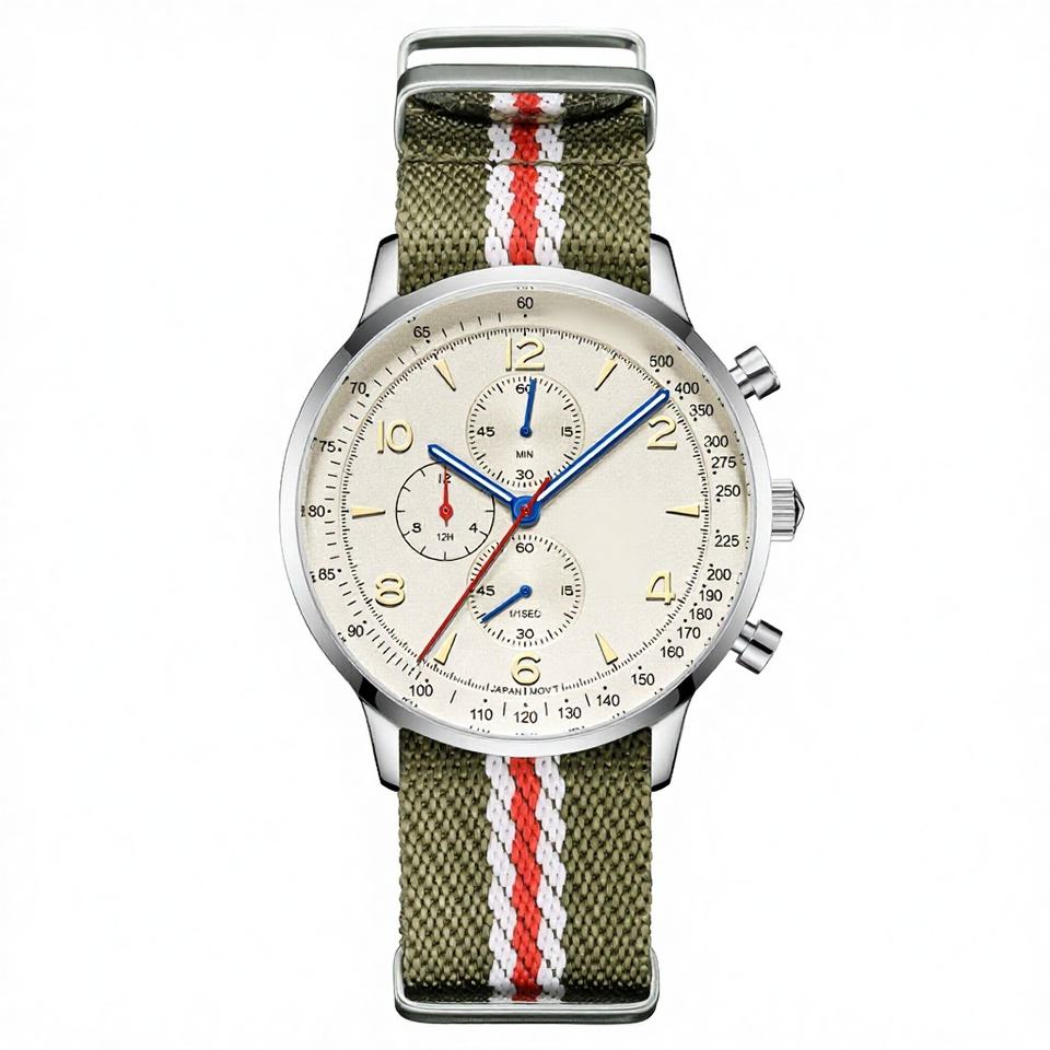 CADISEN New Chronograph Sport Men's Quartz Watch 22mm Band Fashion Charm AR Mineral Glass Waterproof Canvas Wristwatch