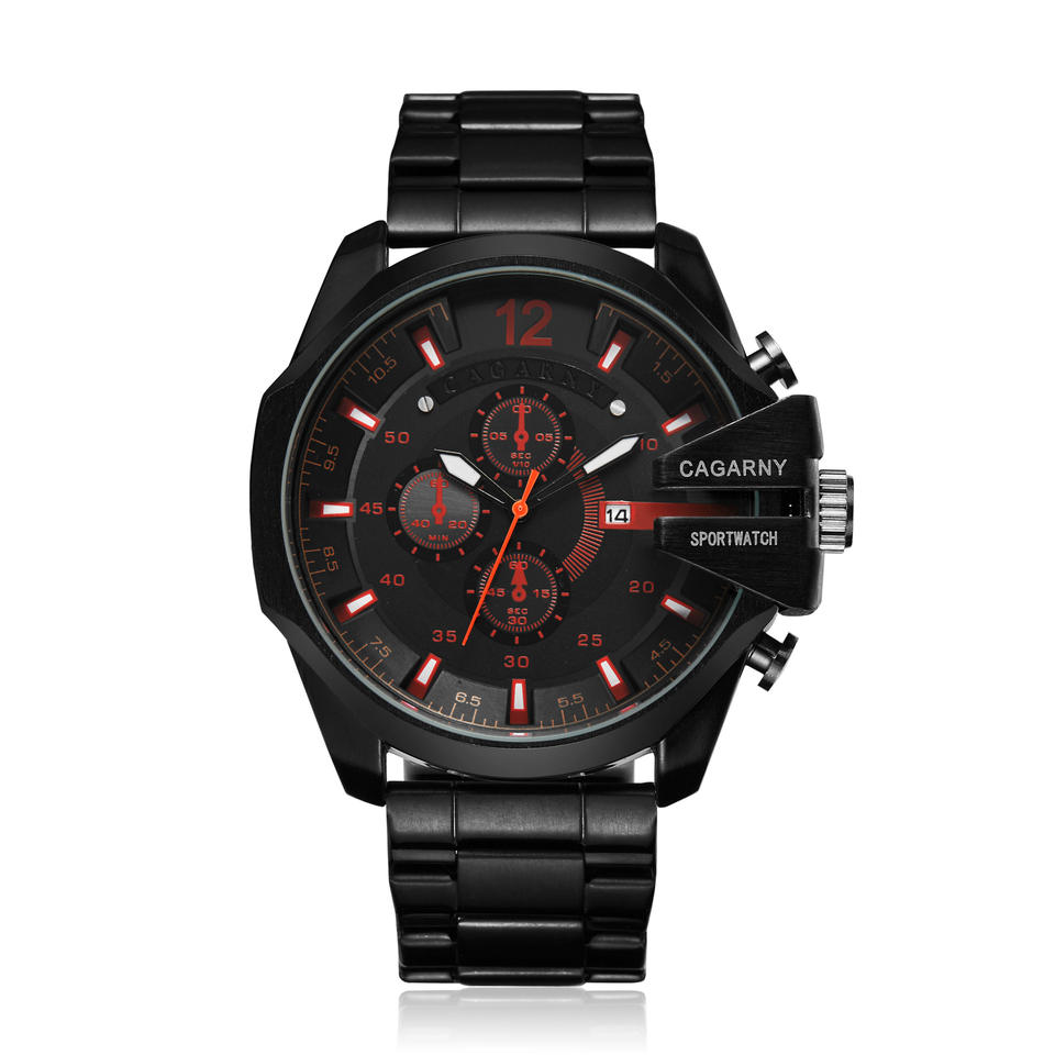 CAGARNY 6839 Luxury Steel Strip Quartz Mens Watch Calendar Luminous Large Dial Mens Watches Relogio Masculino Montres Hommes