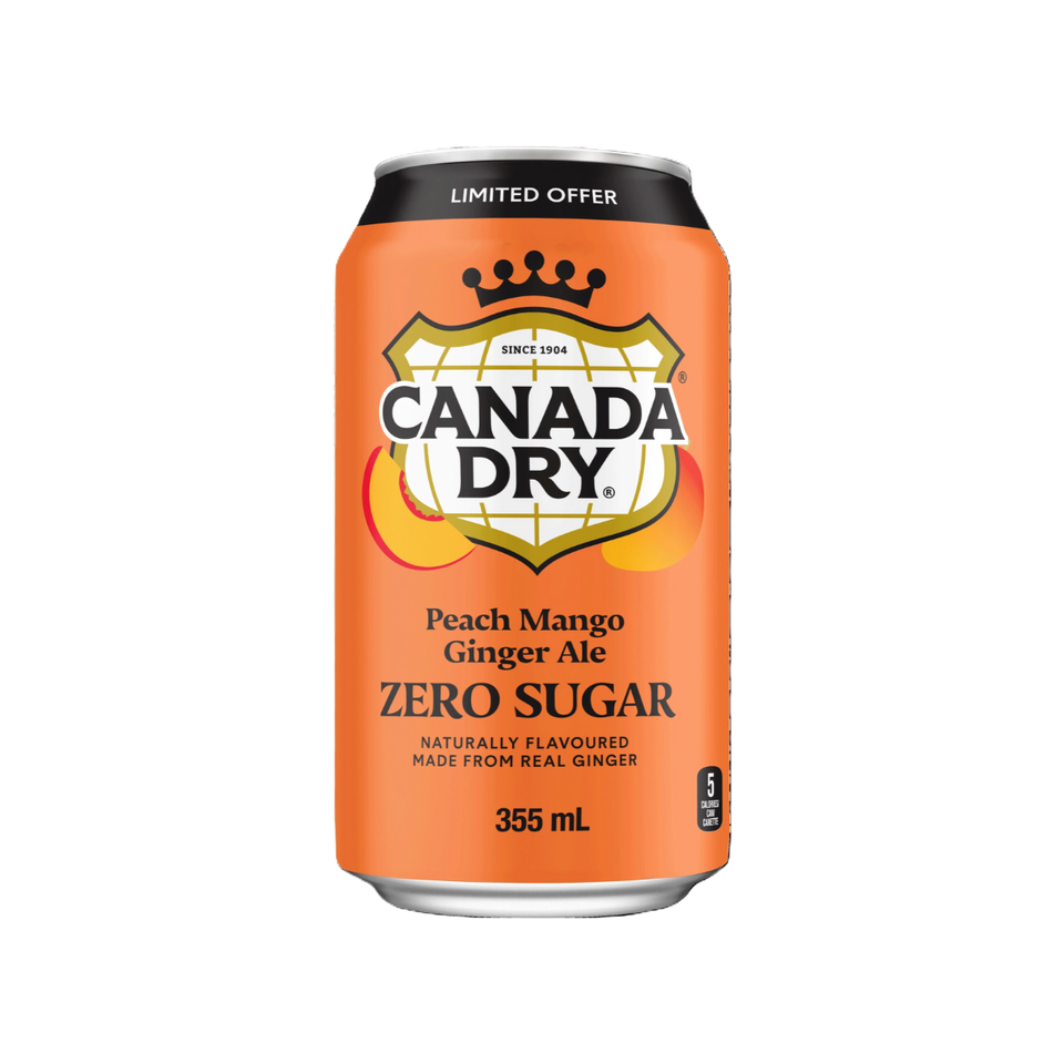 CANADA DRY PEACH MANGO GINGER ALE ZERO SUGAR CAN 355ML CANADA DRY SOFT DRINK CARBONATE 355ML CANADA ORIGIN