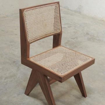 Modern Natural Teak Dining Chair for Outdoor Indoor Use for Bedroom Living Room School Hospital Hotel Natural Rattan Webbing