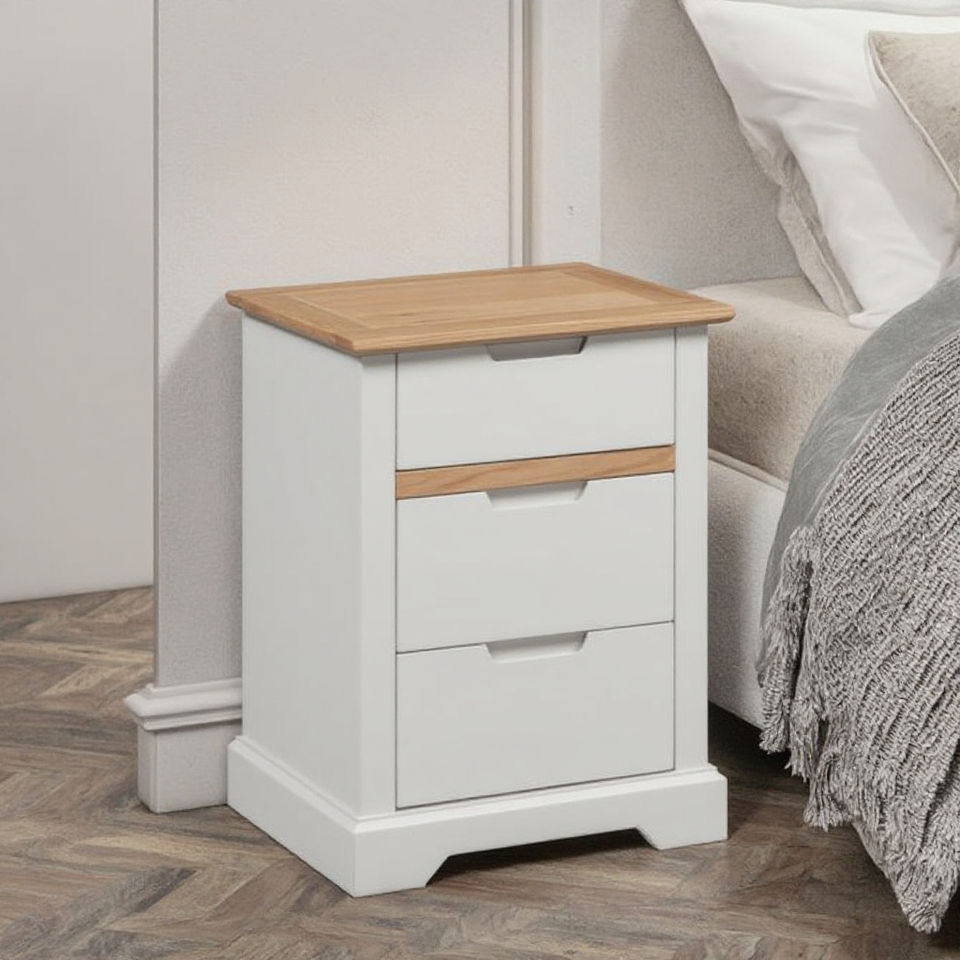 CAPRI BGrand Wooden Bedside Table 3 Drawers Modern Furniture Silver Bedroom Furniture