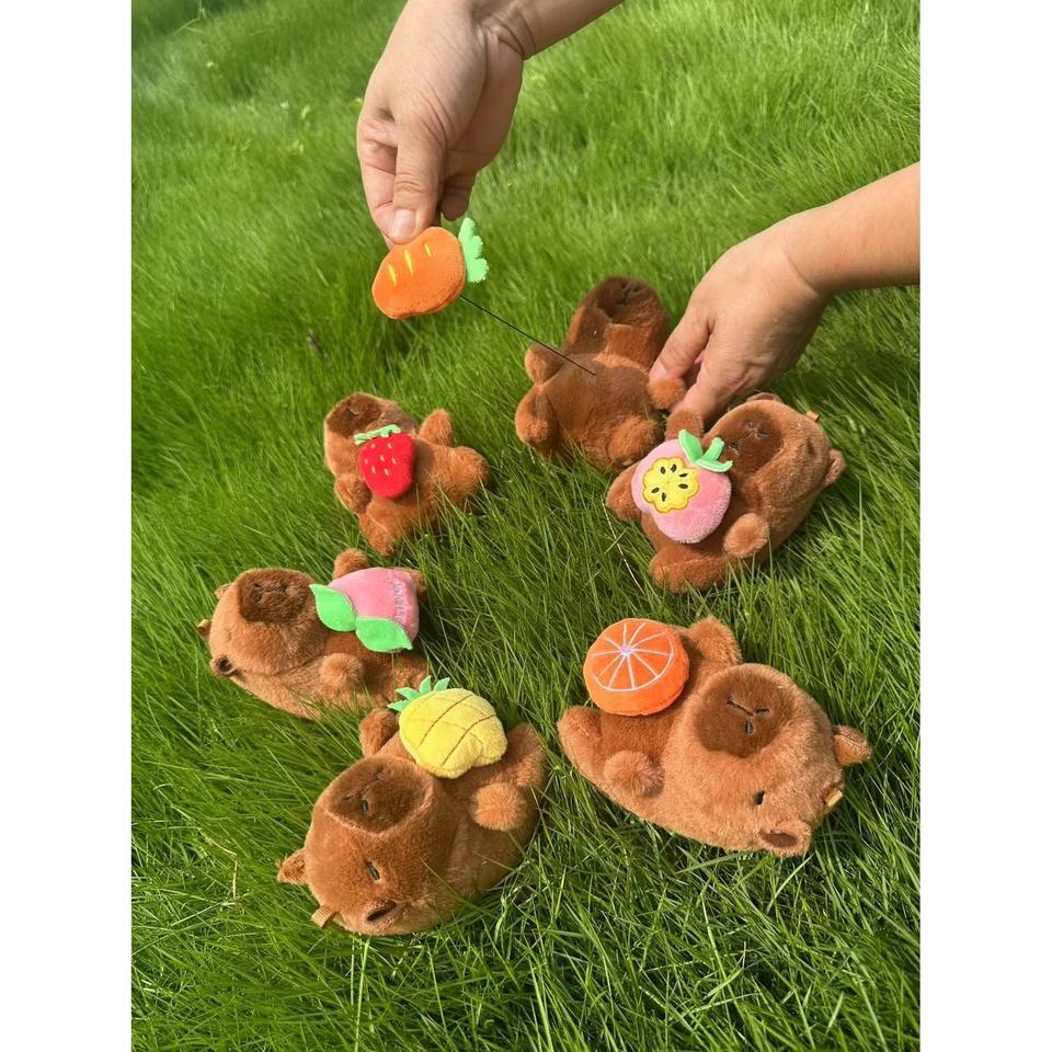 CAPYBARA on ROPE – Assorted 6 Fruits Plush Plants for Decorative Appeal