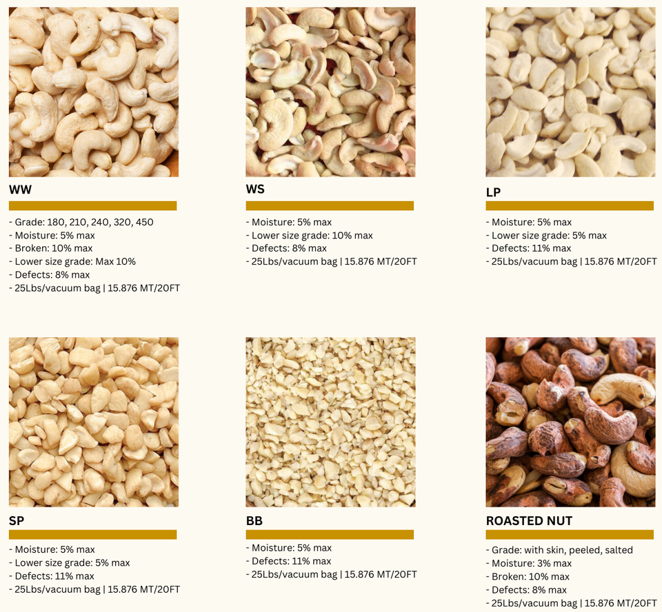High Quality Vietnam Origin Cashew Nuts All Types BB SP LP WS W180 W240 W320 W450 Natural Kernel Wholesale