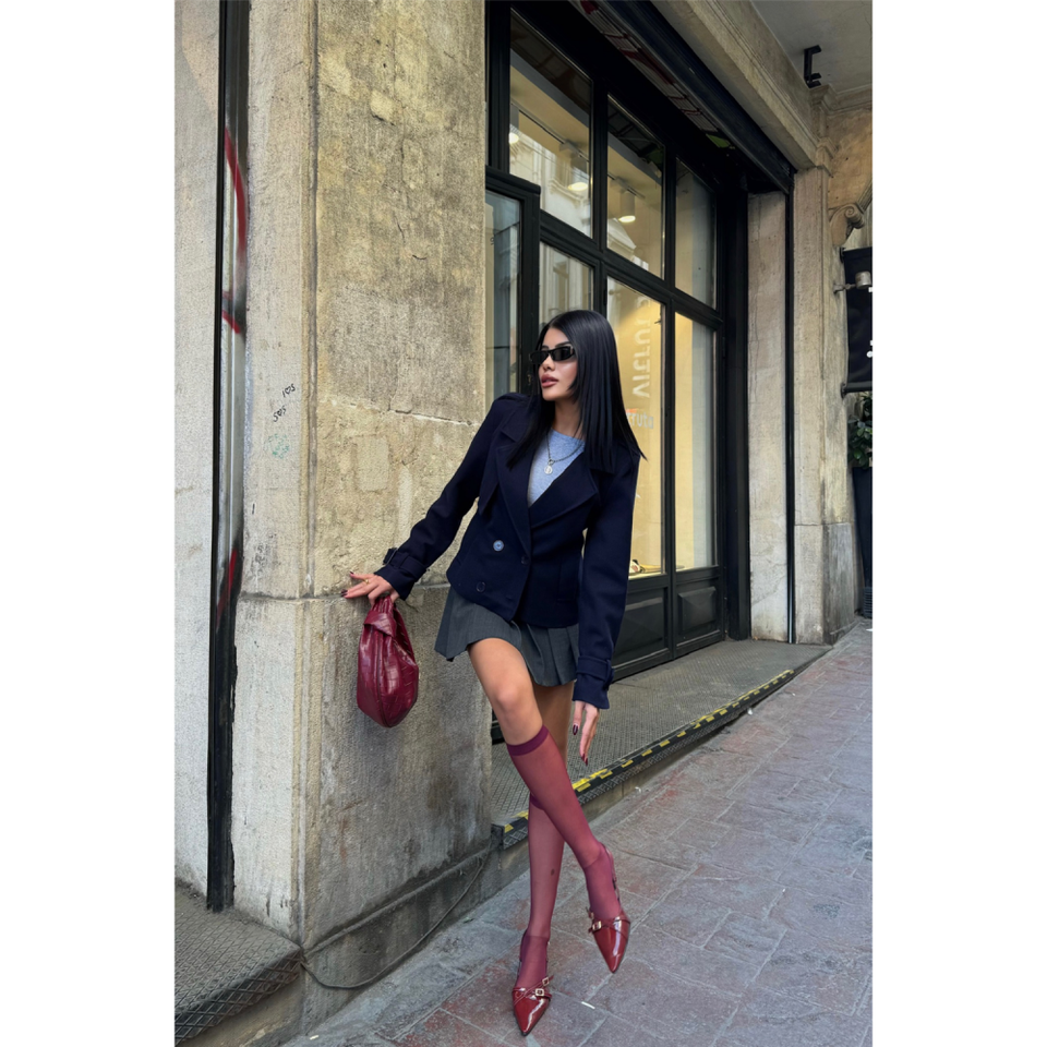 CASHMERE CROP 4-BUTTON JACKET Navy Blue Blazer Full Sleeve Woven Autumn Women's Jacket