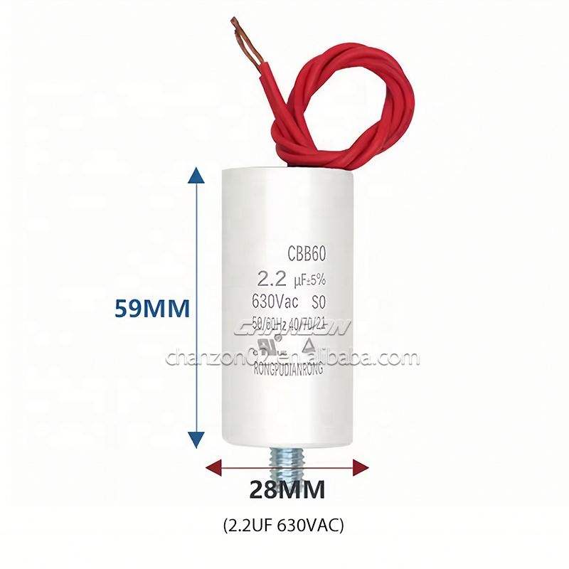 CBB60 1UF 1.2UF 1.5UF 2.2UF 630V 630VAC 450VAC Thin Film Fan Motor Starting Capacitor with Screws for Welding Machine