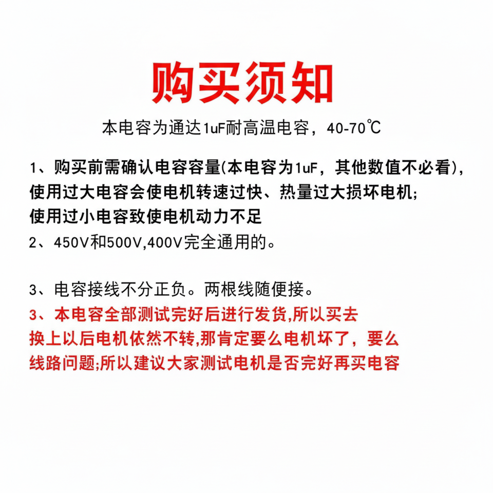 CBB61 Bathroom Heater Fan Motor 500V 1.2uf 1uf Copper Capacitor Electric Power Essential Exhaust Fan Parts for Household Use
