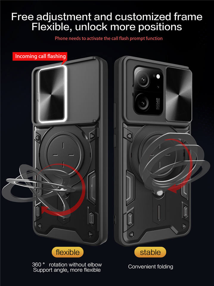 CD Sliding Window Magnetic Bracket Stand TPU PC Phone Case for Xiaomi 13T/13T Pro/K60 Ultra
