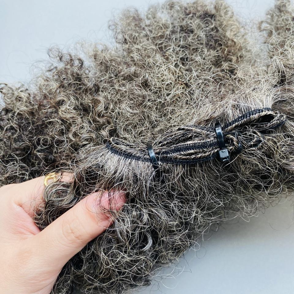 CDYHAIRVN 100% Raw Natural Gray Kinky Curly Hair Old Vietnamese Donors Extensions Top Grade Non-Remy Hair Weaving Professional