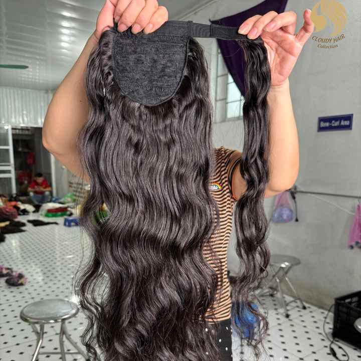 CDYHAIRVN 22 Inches Natural Wavy Wrap Ponytail Extension Non-Remy Raw Vietnamese Human Hair Customizable Lightweight Easy