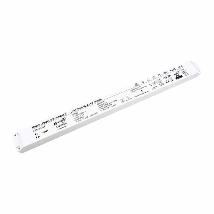 CE 150W DALI-2 Push Dimming LED Strip Light Power Supply Controller 200-240V AC-DC 24V IP20 Flicker 0-100% Free Smart LED Driver