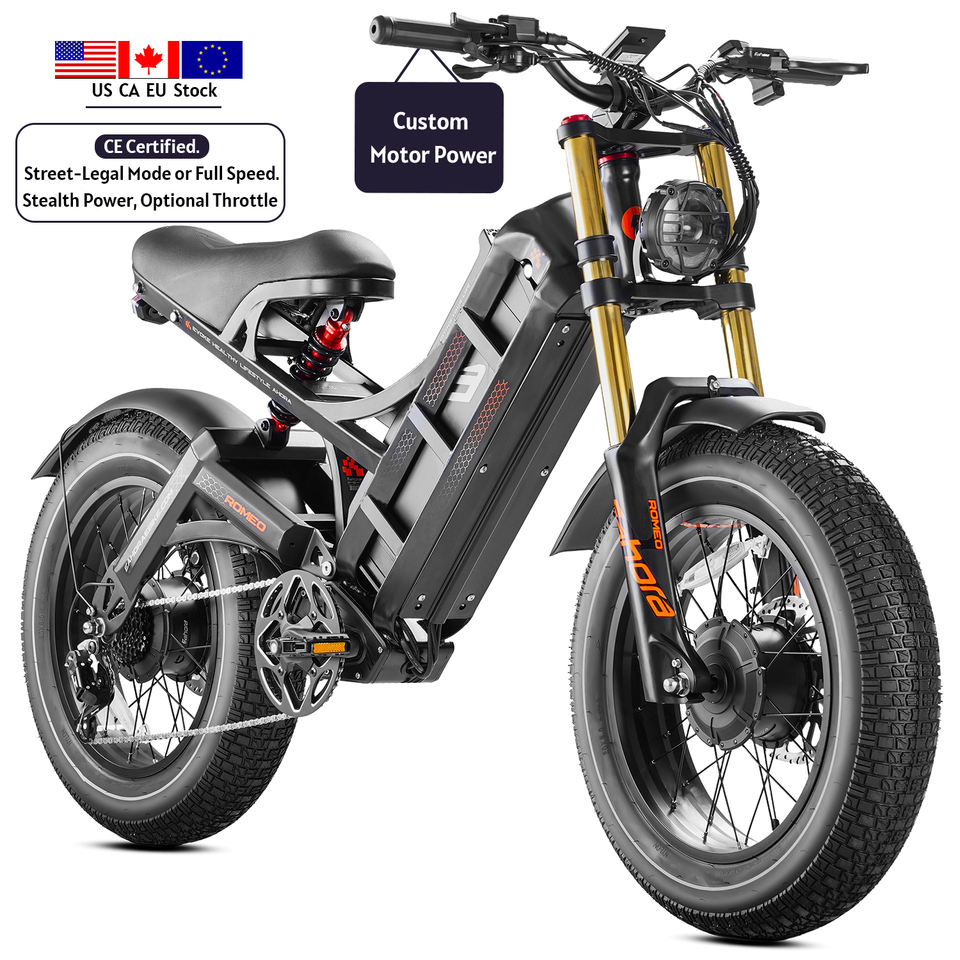 CE Certified 25OW Electric Mountain Bike for Adults 52V 60Ah Removable Battery Steel Frame Shimano Gears Hydraulic Brakes