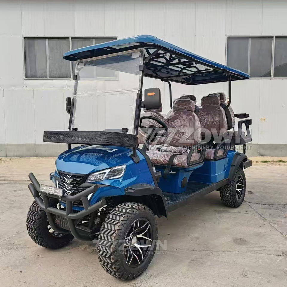 CE Certified Blue Electric Golf Cart Battery Sightseeing Cart 6 Passengers with Roof and Windshield on Sale