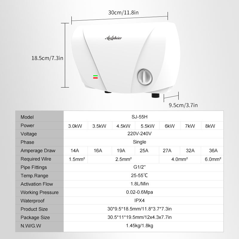 CE Certified Wall-Mounted Instant Tankless Electric Water Heater Stainless Steel Heating Body Self-Check Leakage Hotel Household