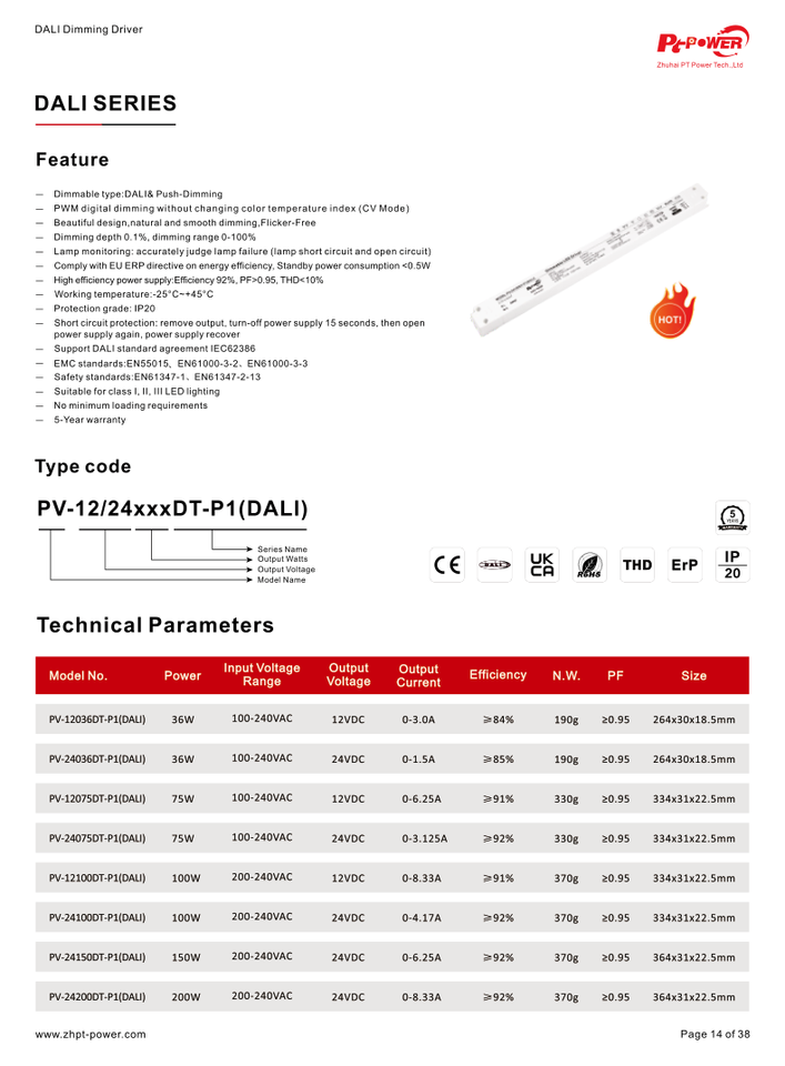 DALI Series with linear plastic case(P1)Model Number