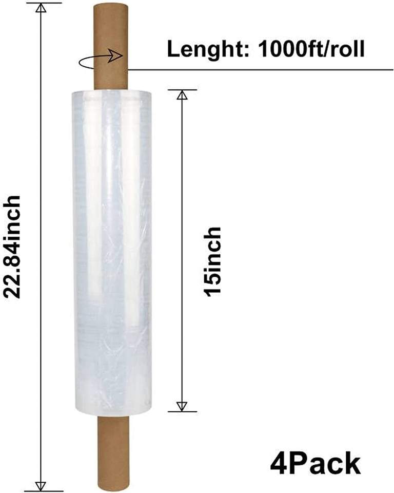 CFC Industrial Clear Plastic Stretch Wrap 15 Inch X 1000 Feet 80 Gauge with Handle