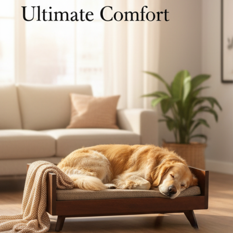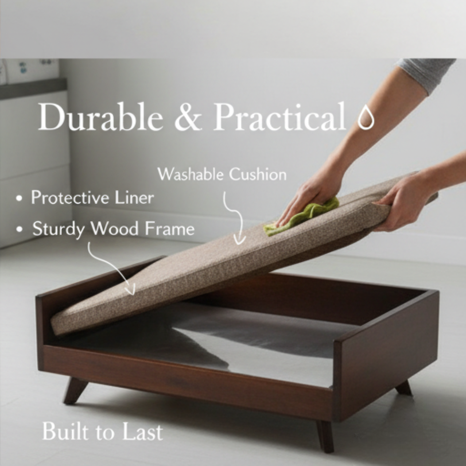 CH12 Wooden Pet Bed Mid Century Style Elevated Cat Dog Couch Durable Sturdy Frame Custom Size Available