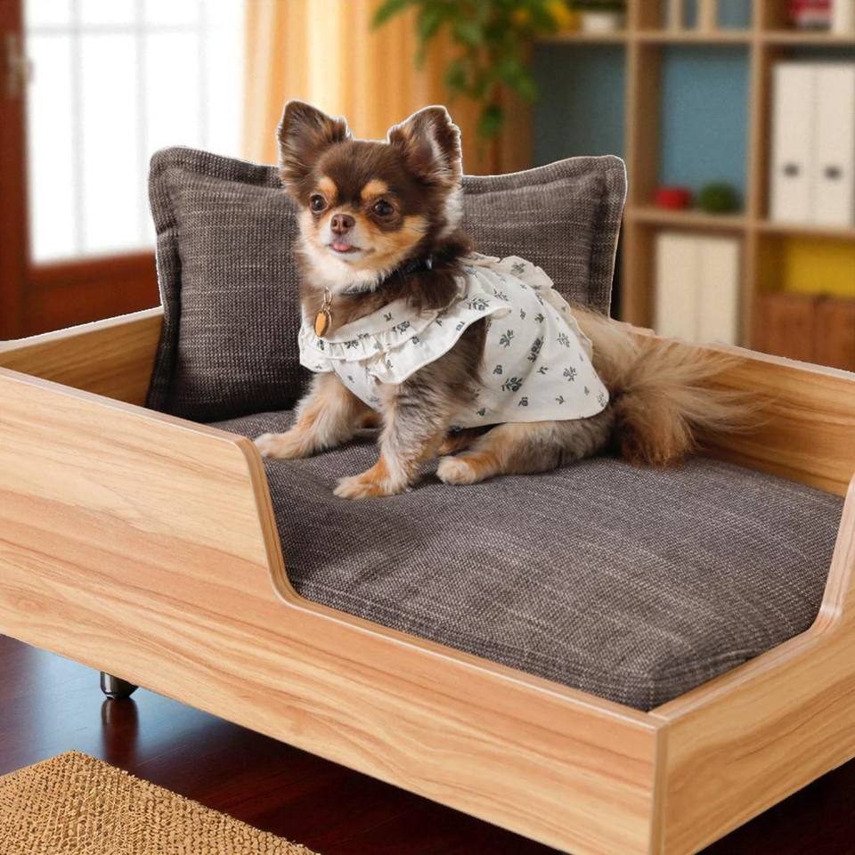 CH13 Raised Wooden Pet Bed With Foam Cushion Easy To Assemble Indoor Use Vietnam Manufacturer
