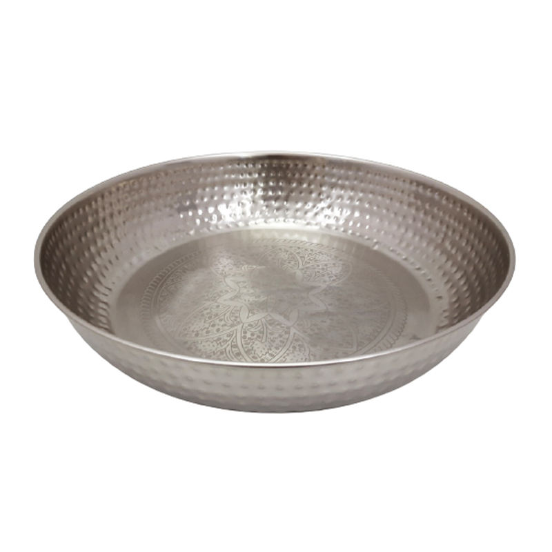 CHC Design Large Round Serving Bowl Silver Metal and Iron with Hammered Centre for Party for Salad and Fruit Bowls