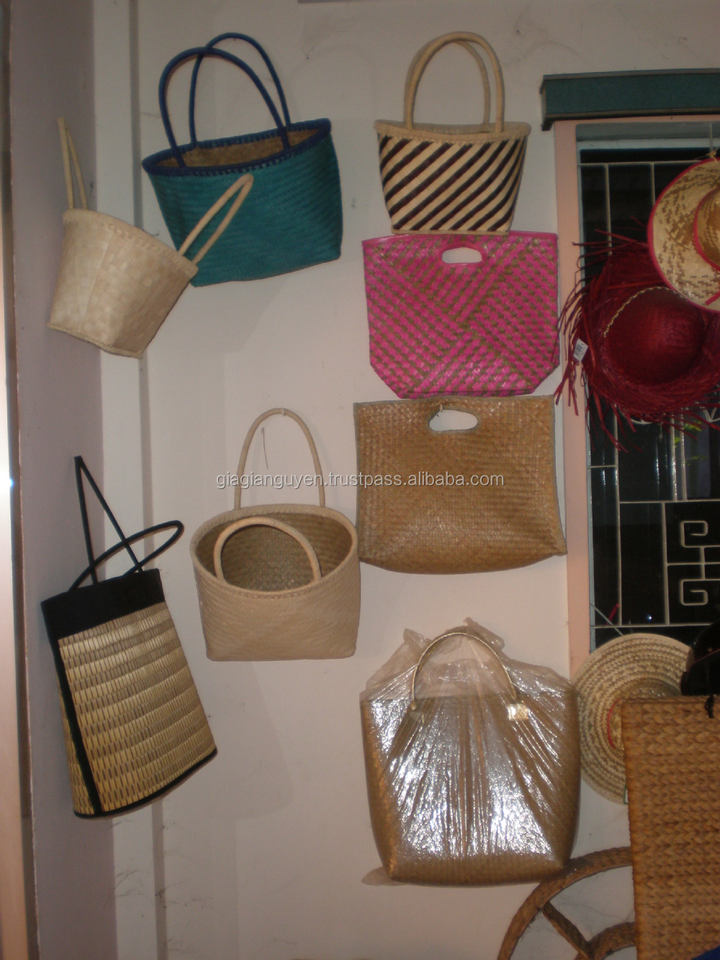 CHEAP NATURAL STRAW BAG, PALM LEAF BAG FROM VIET NAM BAMBOO RATTAN BASKET
