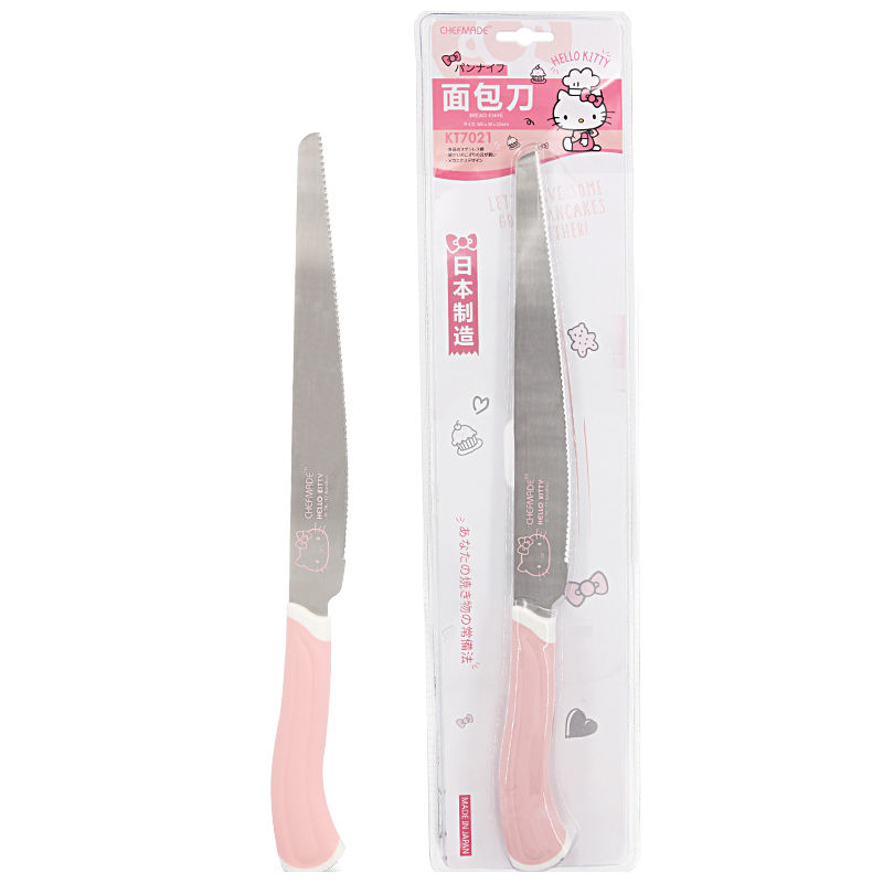 CHEFMADE KT7021 Kitchen Baking Promotional Long Serrated Stainless Steel Bread Knife Cutter With Pink PP Handle
