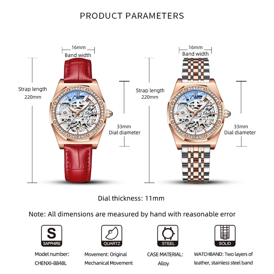 CHENXI 8848 Women Automatic Mechanical Watch Top Brand Luxury Stainless Steel Diamantes Waterproof Wrist Watch Ladies Skeleton
