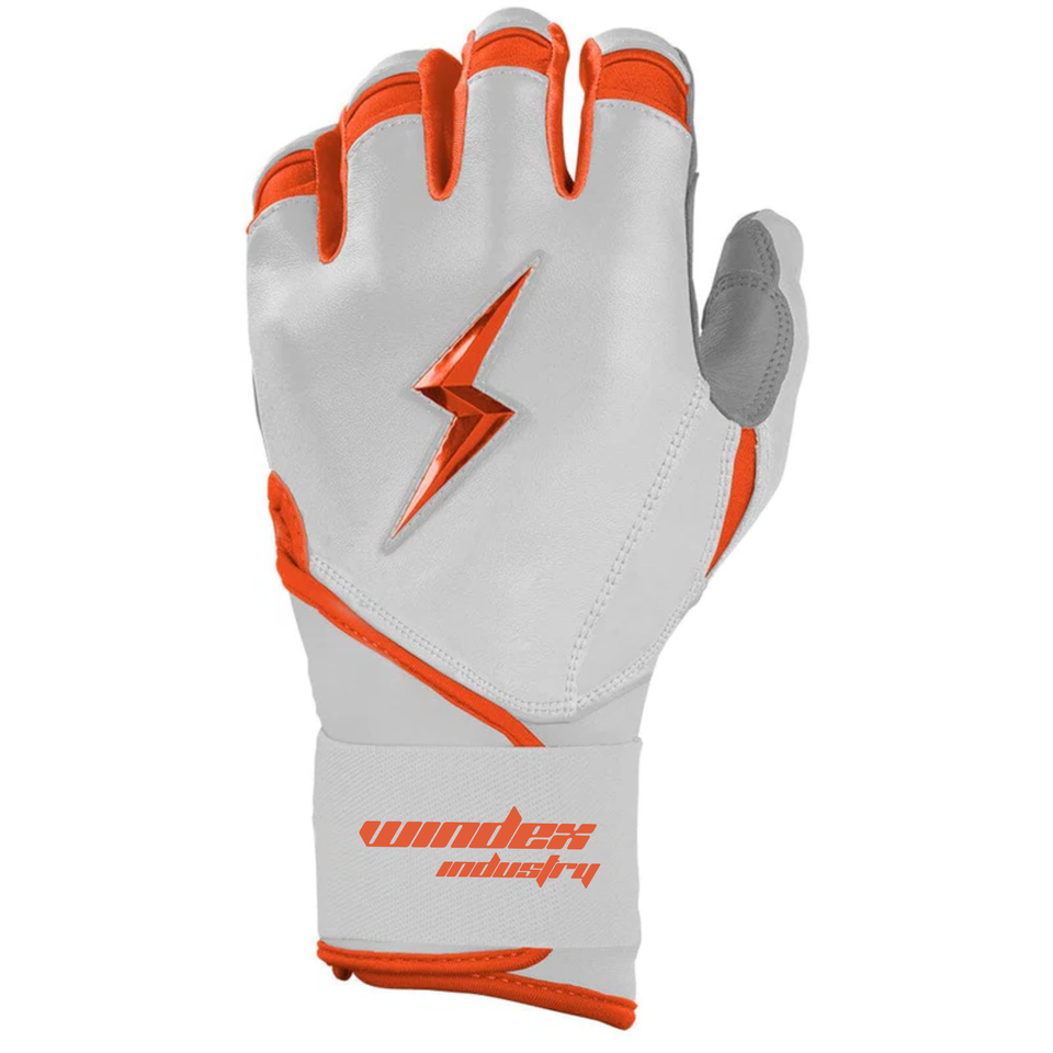 CHROME Series Long Cuff Batting Gloves Leather Unique Design Wholesale Rate Bruce Bolt Baseball Batting Gloves