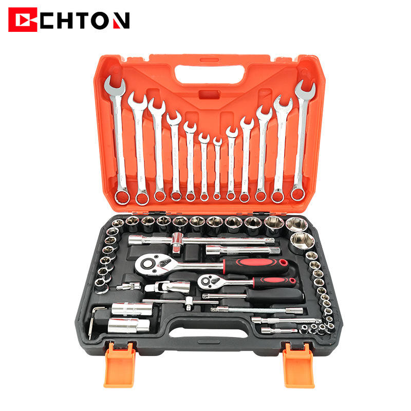 CHTON 61-Piece Socket Ratchet Wrench Set Carbon Steel Mechanical Automotive Repair Tool Kit Durable Multi-Functional