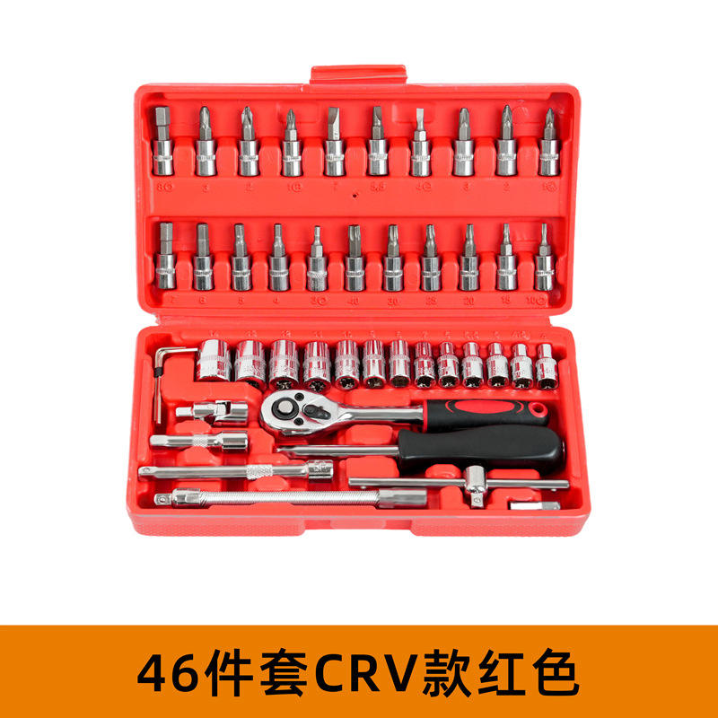 CHTON Kawataku 46-Piece Tool Kit Socket Wrench Screwdriver Set Chromium Vanadium Steel Plastic Case Mechanical Repair